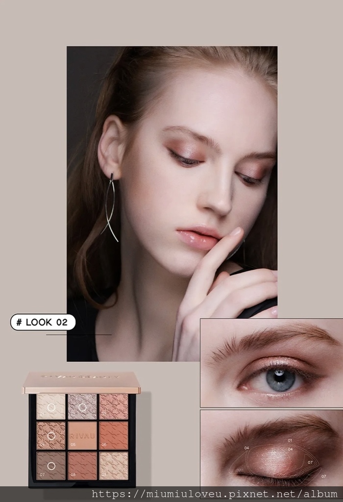 [眼影盤推薦]Rivau Beauty完美九色眼影盤-粉紅瑪瑙 & 咖啡琥珀~細膩質地/暈染不混濁/絲滑不混濁