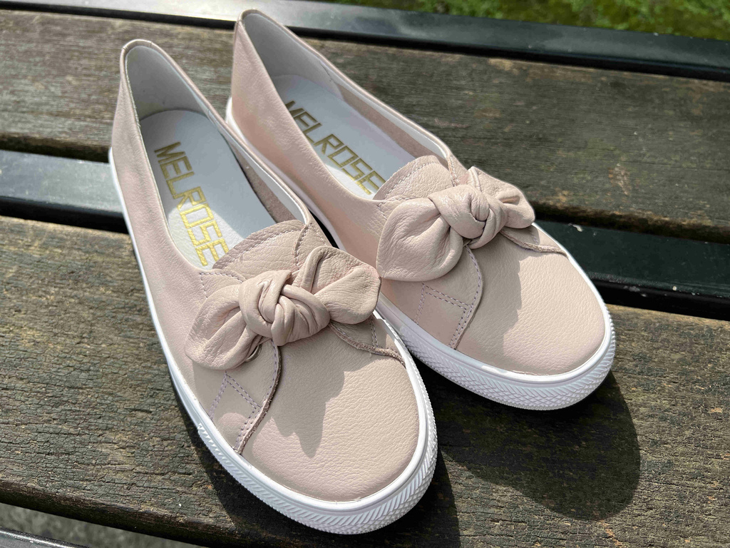 [女鞋推薦] MELROSE 美樂斯簡約氣質蝴蝶結牛皮厚底休閒鞋-柔嫩粉 ~百搭好穿,只要美叮噹,不要痛到美叮美噹!附三種穿搭示範~
