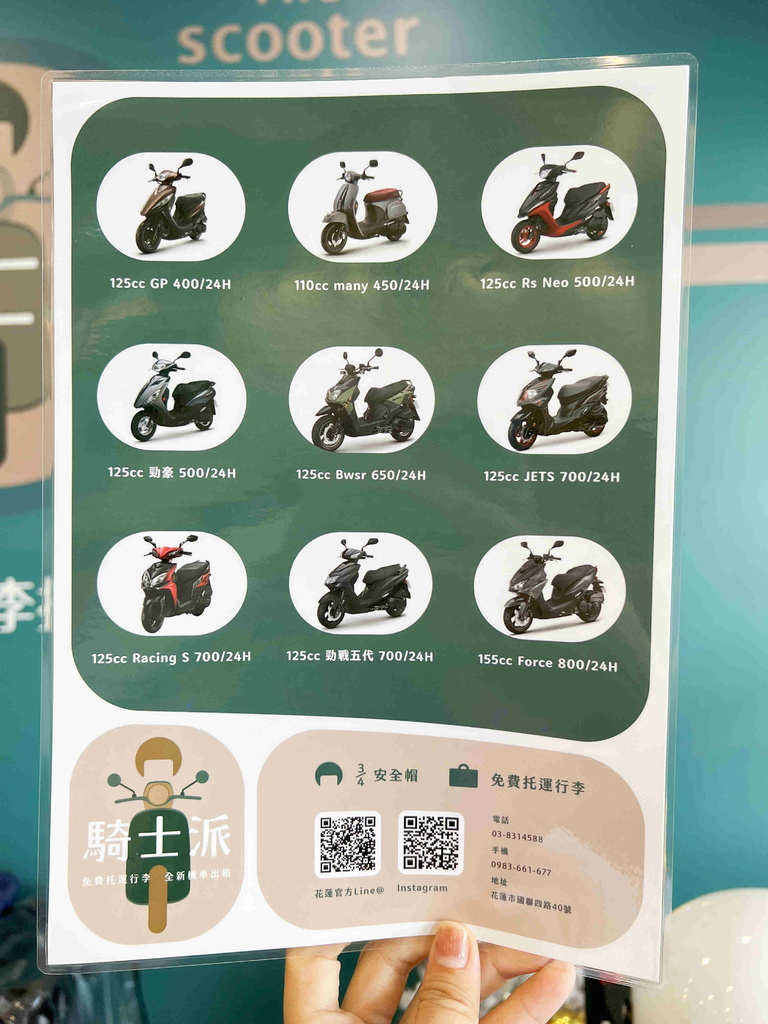[花蓮機車租借推薦]花蓮騎士派-機車款式新狀況好/專業態度親切/環境佳