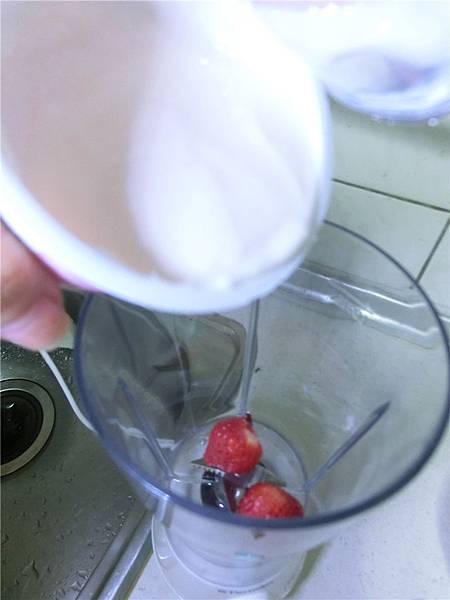 把草莓及優格放入果汁機