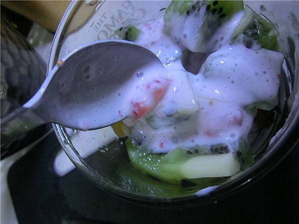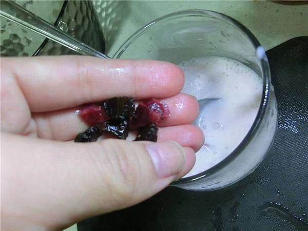 把打好的優格放入莓果或莓果乾然後攪拌均勻