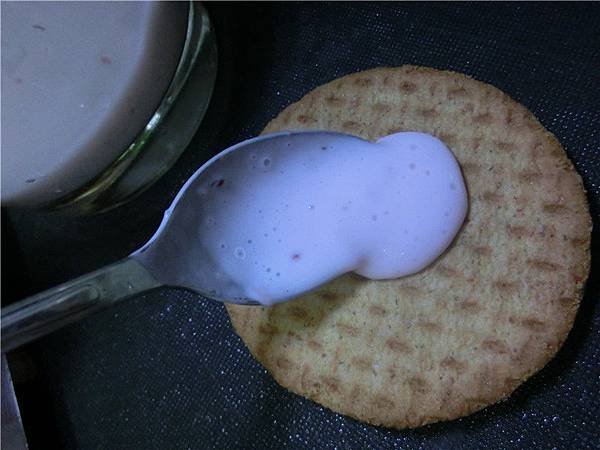 把拌好的優格放到消化餅上