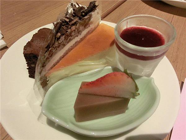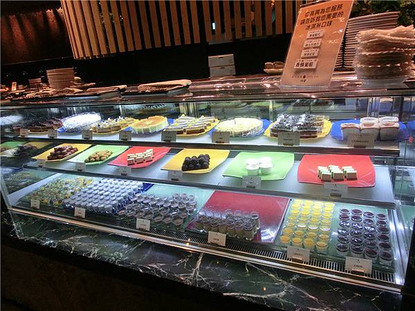 點心櫃除了蛋糕還有麻糬。布丁。水果或茶凍及冰淇淋