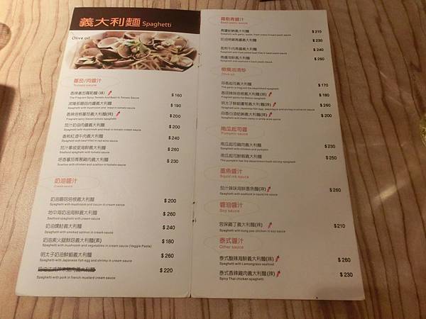 義大利麵都是NT190-260元間