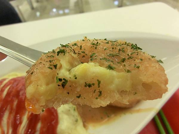 可樂餅包的餡很軟甜有玉米粒~