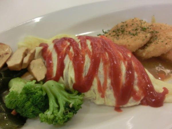 蛋包飯表面放了很多蕃茄醬讓顏色鮮明味道也加倍。