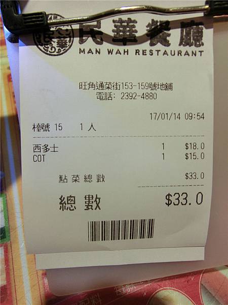 一共HKD$33元不必服務費。