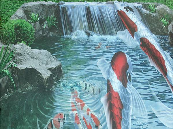 地上有魚的布置很逼真好多人停下來拍照。
