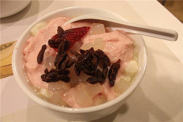 有草莓和果乾的草莓椰果豆腐花,