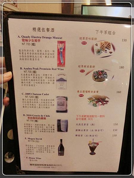 下午茶有鬆餅和茶類也有酒可以點