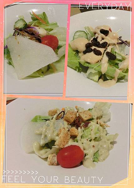 餐前沙拉有三種醬汁選擇: