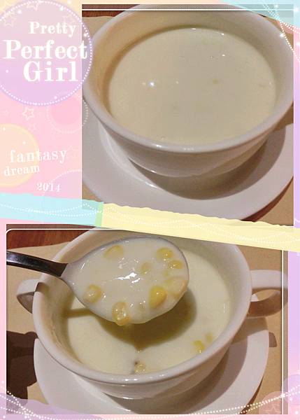 MiuMiu喝的是小朋友最愛的玉米濃湯,濃濃的玉米料不少喔!