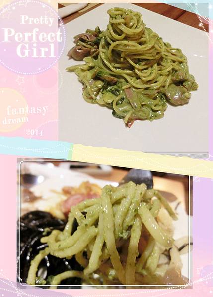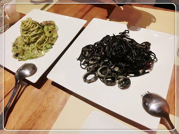 義大利麵~最先送上的是青醬鴨胸麵與墨魚麵,