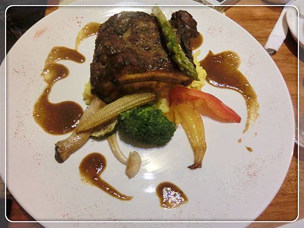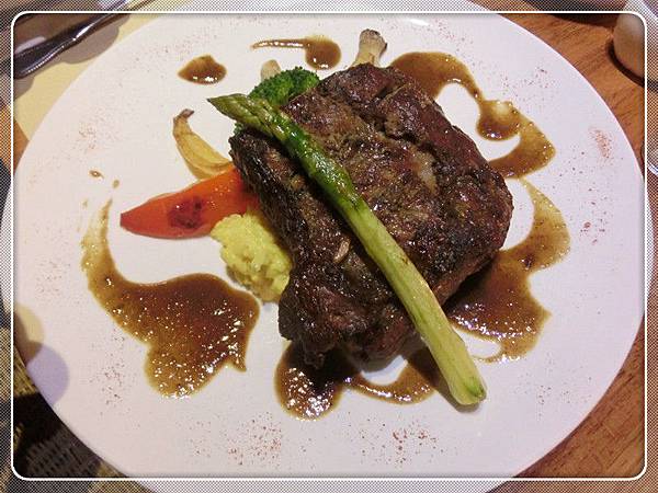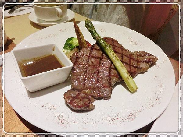紐約克小排470元 擺盤漂亮立體,表面有少許血水透露著牛肉的新鮮。