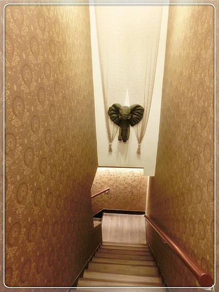 金色為主要色調搭配藤做成的桌椅加上尊貴獅像,