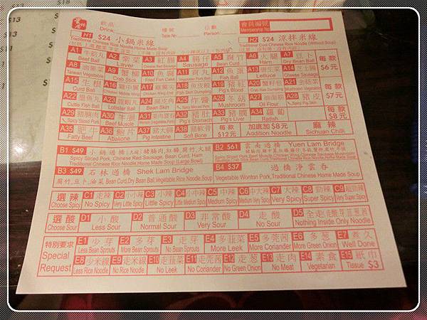 這裡點菜是填這種像答案卡的點餐單,也有像車仔麵,