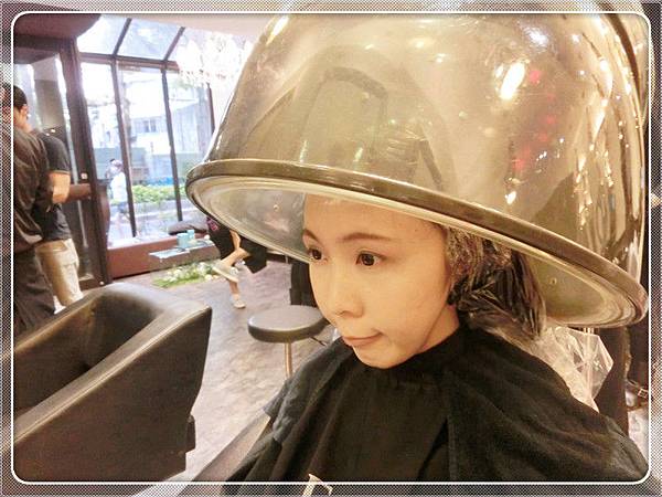 包上保鮮膜定色,再用半罩式烘髮器來烘髮~