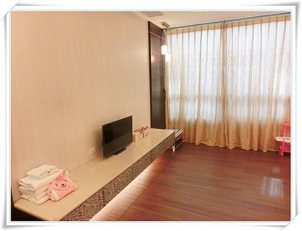 打開門是一間蠻大的漂亮空間,有電視還有和室桌及墊子。