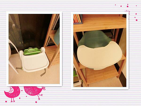 有二種尺寸的小朋友餐椅,
