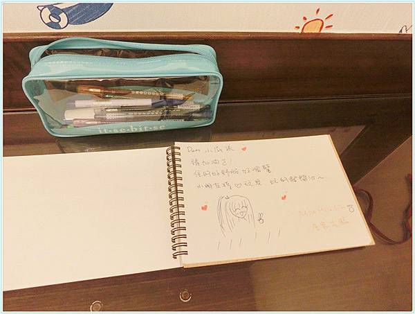 桌上有小屁孩民宿的名片還有留言本,
