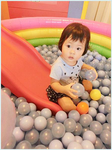 做了一個遊戲間有彩球滑梯還有籃球框。