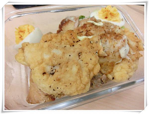今天有二道菜,蜂蜜芥茉烤雞腿和啤酒炸魚片~