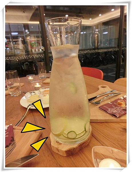 桌上的水有小黃瓜及檸檬,