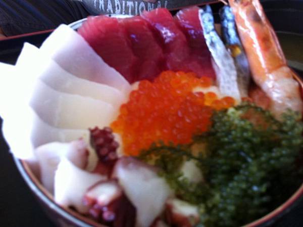 碗裡綠色一顆顆小圓球的食物就是海葡萄~