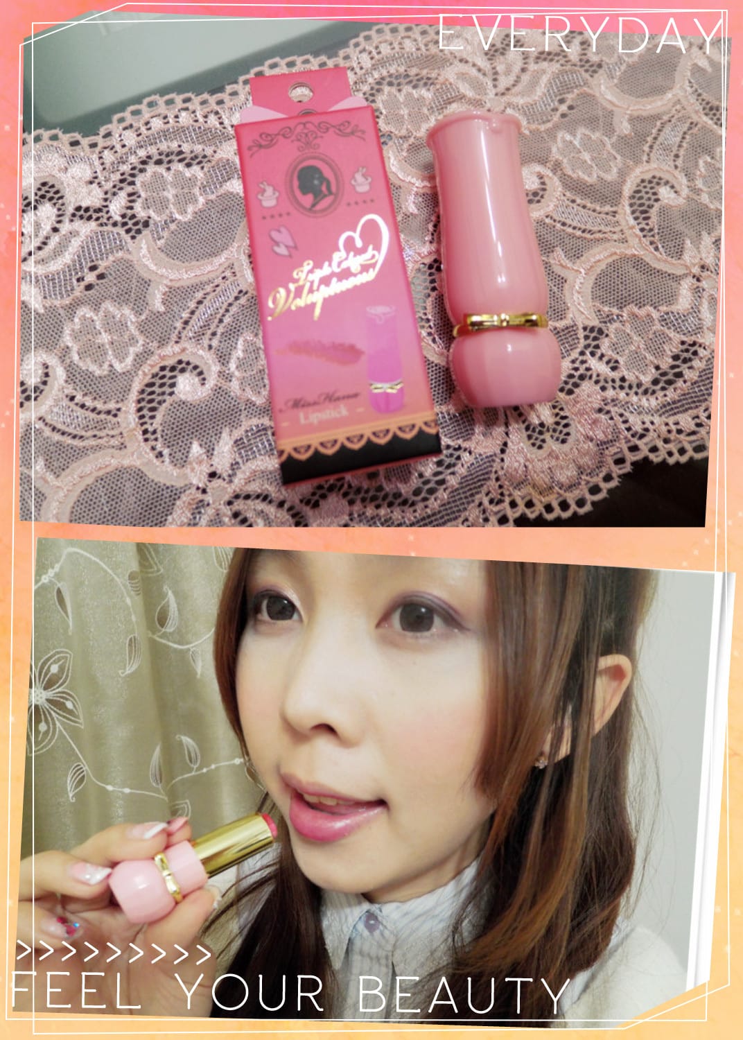 STEP 2唇膏與嘴唇呈現平行線,均勻塗抹於雙唇