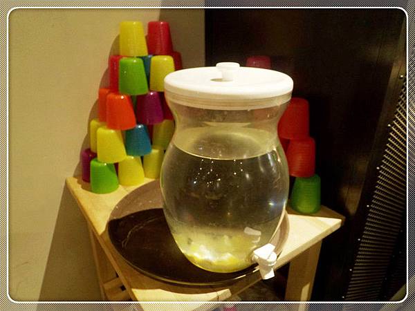 水是檸檬水,繽紛的杯子一層層很好看~
