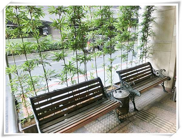 門口有和風竹和椅子。