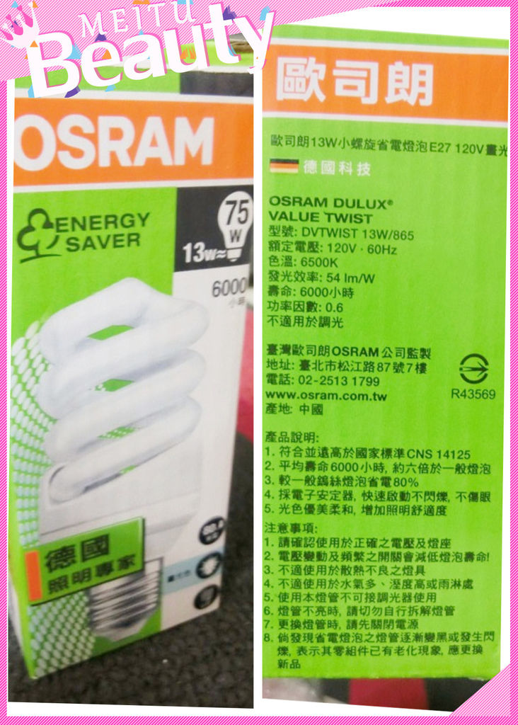 盒身有詳細的說明,歐司朗燈泡是德國製。