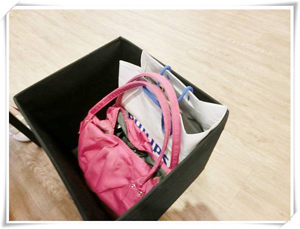 一個放置包包的置物布籃可放椅下,