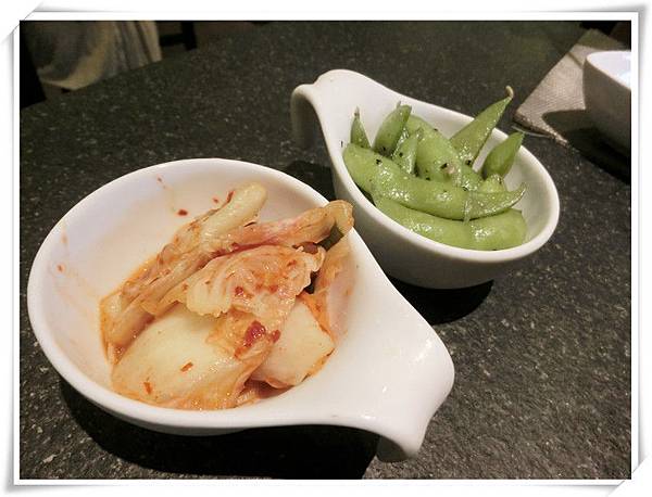 先送上泡菜還有毛豆讓我們解解饞。