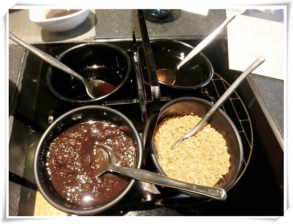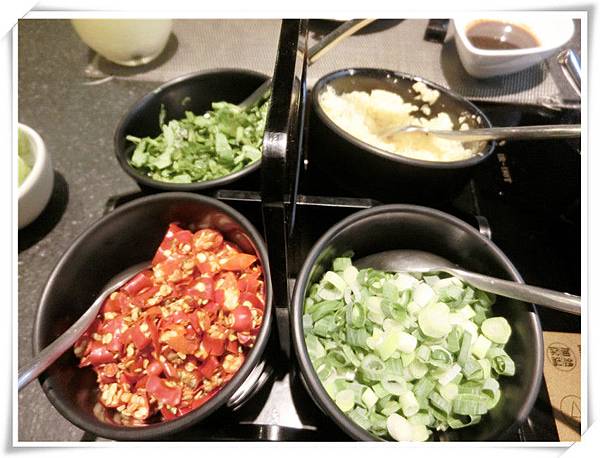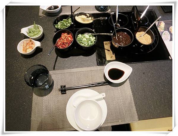 一坐上桌服務人員就送上滿桌子的調味佐料,