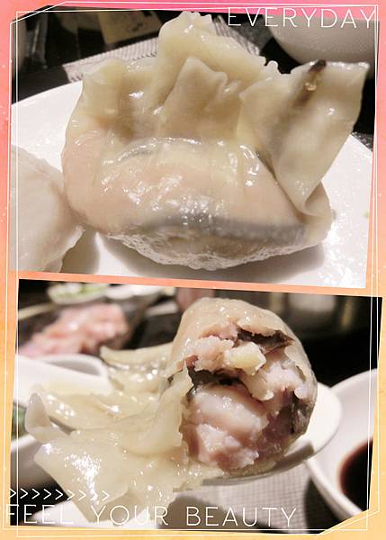 這餃很豐富的餡料,包含有:豬肉.竹荀.木耳等,