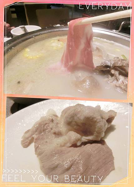 梅花豬來涮涮湯,因為切的厚薄適中,