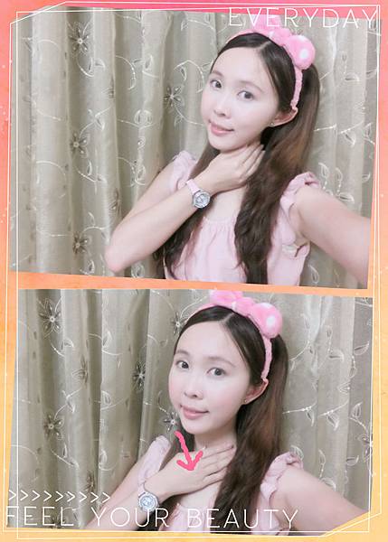 再用按壓方式塗抹產品至鎖骨(分成五段),