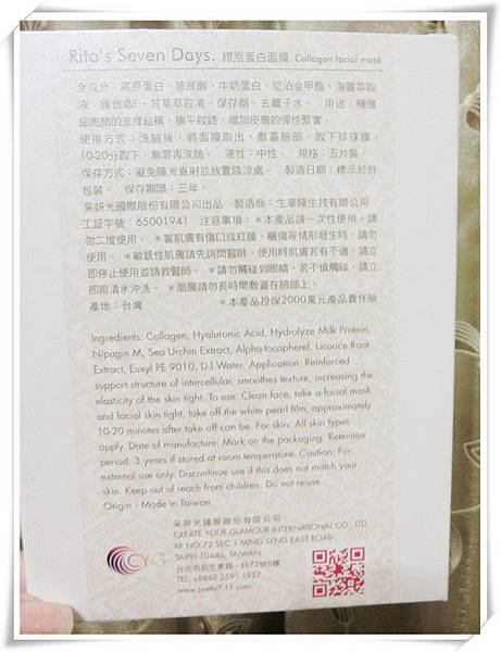 Rita′s Seven Days.美肌系列-膠原蛋白面膜