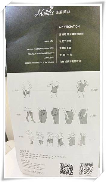 盒子還有附送一張塑身衣褲產品穿著方式