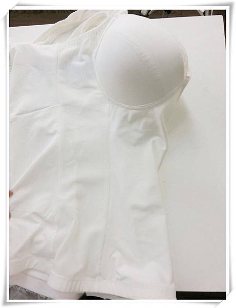 這件衣服平放可以看到他大概是分成肩帶及罩杯和腰部
