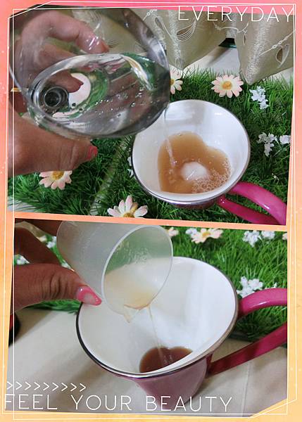 量杯裡面,再倒杯子中稀釋。