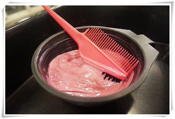 染頭髮的髮劑拿來了,一碗粉色的