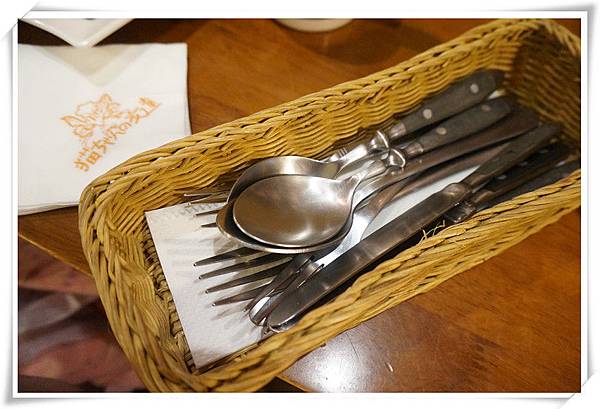 餐具整齊的在小籃子裡面,而衛生紙
