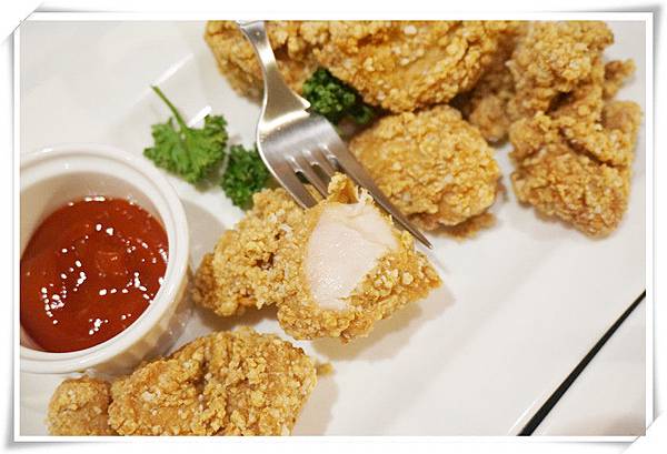 這道與薯條及雞塊是三樣拚盤,