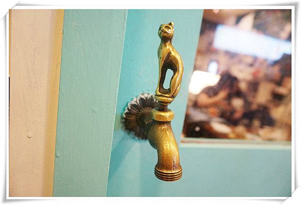 門把的樣子是一個金屬貓咪,