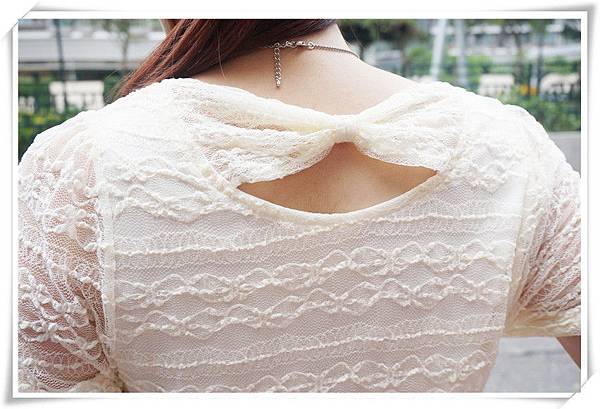 看起來非常甜美的蕾絲蝴蝶結上衣,