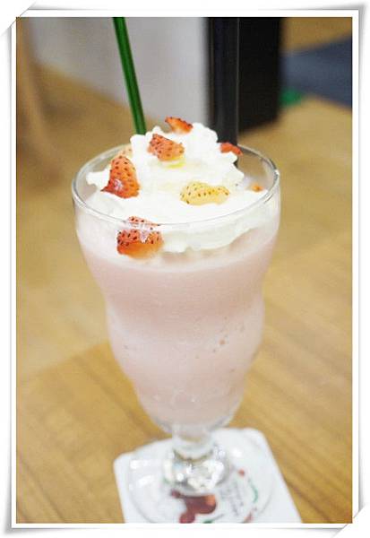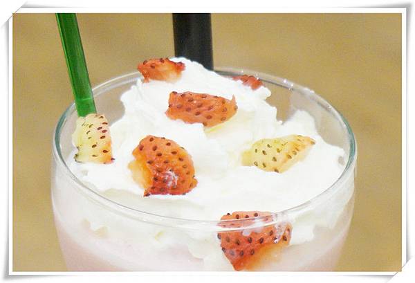 草莓奶昔不只裡有草莓和牛奶香氣,還有表面