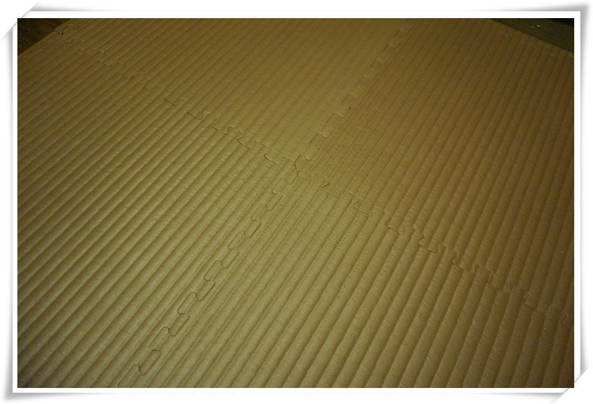 拿出了美美地墊將地上的坑坑疤疤擋起來,