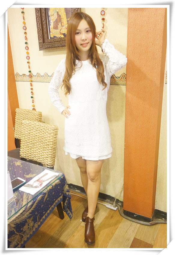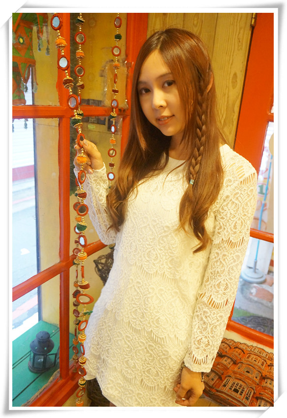 白色的蕾絲洋裝十分有浪漫的氣息,